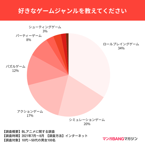 20代以上の男女を対象に行なったアンケートでは、人気のゲームジャンルはRPG・シミュレーションゲーム・アクションの順になりました。チェックするポイントとして、やり込み要素をあげる方が半数以上な点も、人気のゲームジャンルとリンクしています。