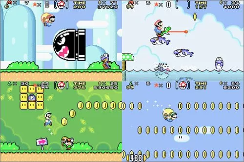 『スーパーマリオ3』と『マリオブラザーズ』が一つになった作品です。マリオとルイージが多彩な変身能力を駆使し、砂漠や海などのステージを冒険します。